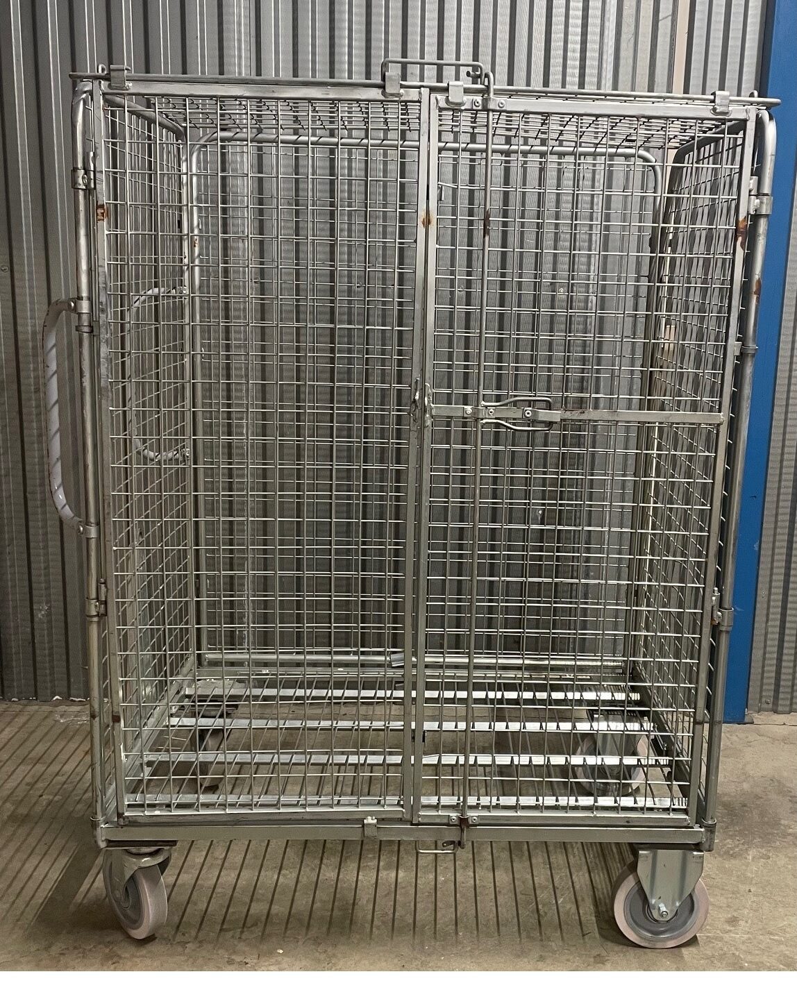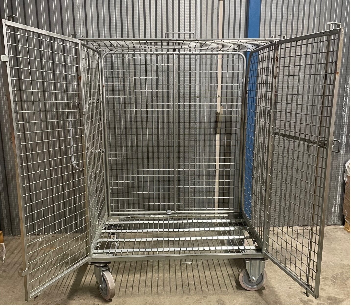 Containern fungerar utmärkt som rullcontainer och säkerhetsbur på hjul för daglig användning.