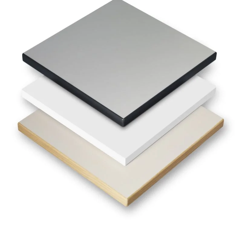 Vi lagerhåller våra silverline-skivor med ljusgrått laminat med mörkgrå kantlist samt skivor med vit laminat och vit list.